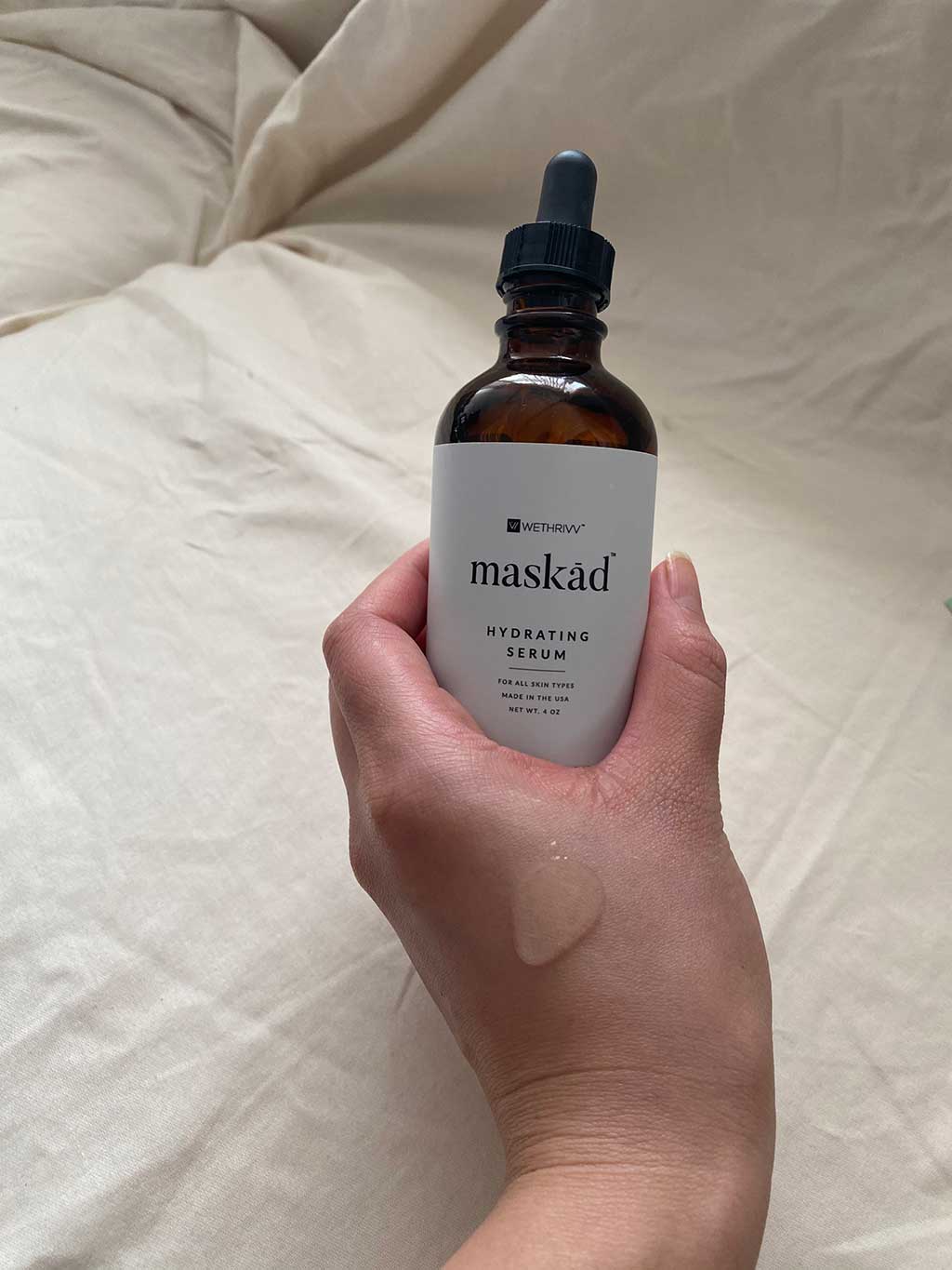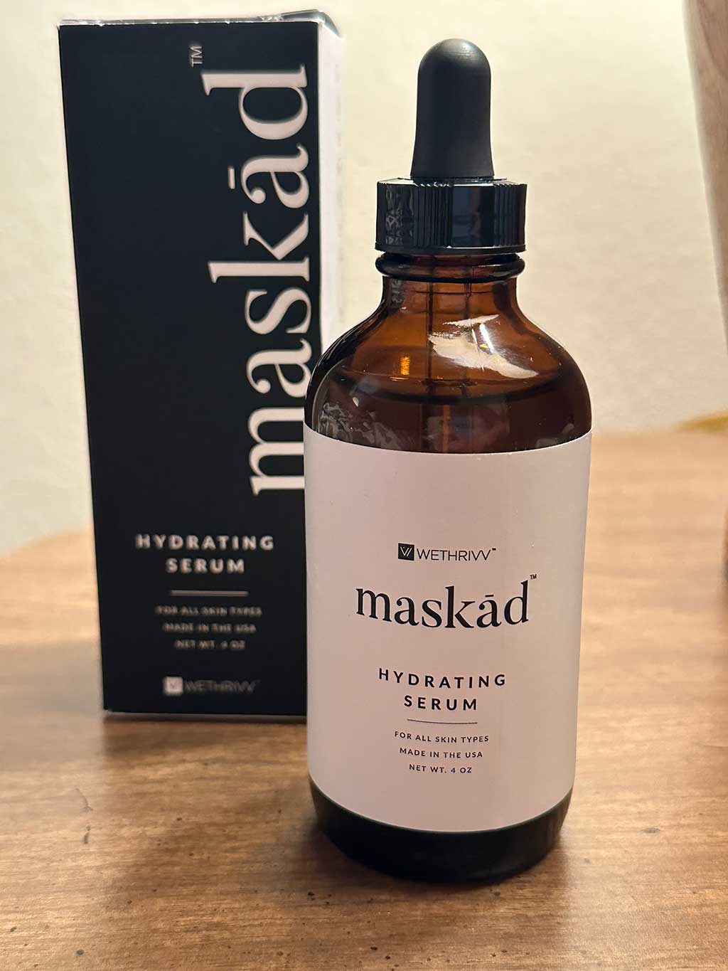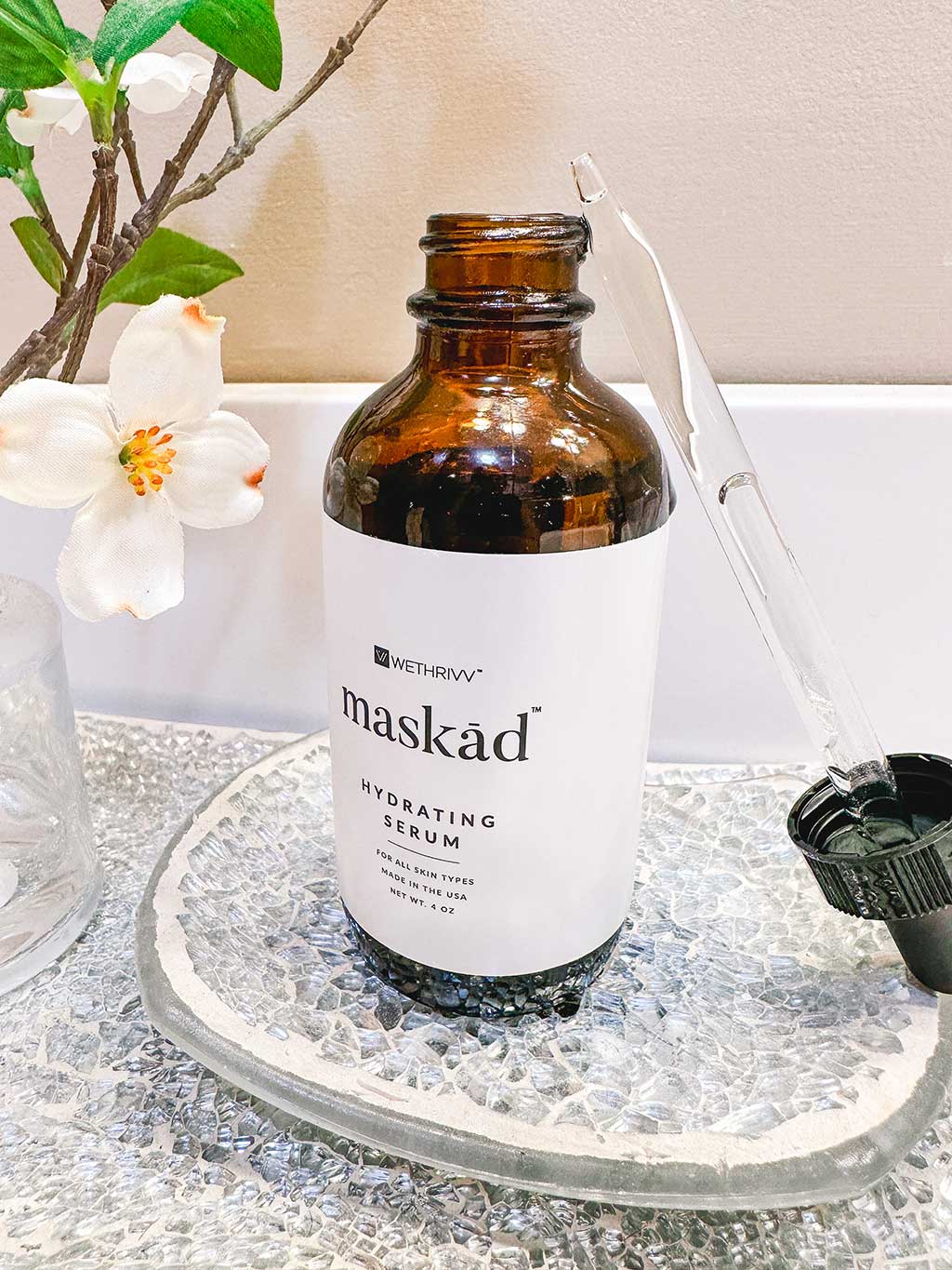 Hello BeautyTap Beauties, my name is Elisabeth and I have been a cosmetologist for over 10 years. My specialty is skin care. I love to share my skin care knowledge with you all. I have worked as a beauty consultant in both professional and retail beauty retailers. I have hosted several special events and product launches for top beauty companies. First off I love the packaging for the Maskād Hydrating Serum. The bottles look like old timey apothecary bottles. It’s totally my esthetic. The actual serum is great for summer it’s super lightweight. It’s slightly thicker than water. It’s great for layering since it’s so light. It would pair nicely with humid weather. It’s oil free so great for oily and combo skin. I have dry skin and I love it.