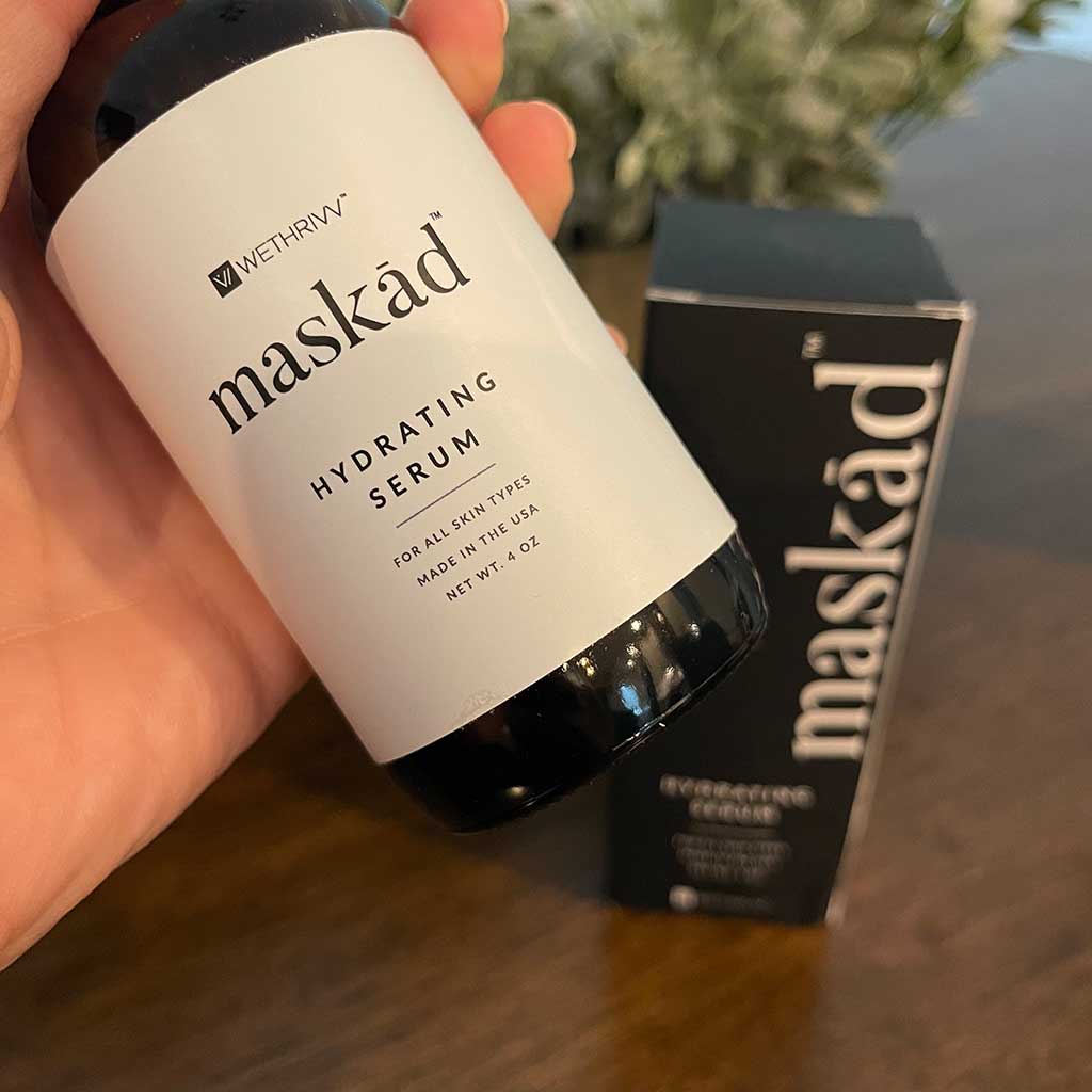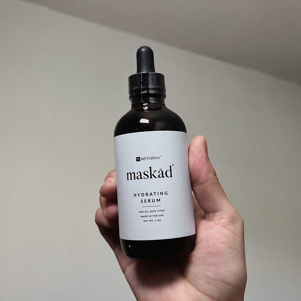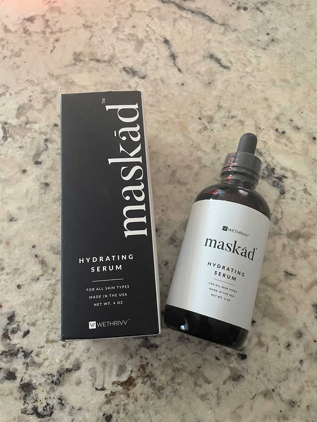 Maskād Hydrating Serum is truly a wonderful addition to my routine.I am a licensed cosmetologist for over 25 years specializing in skin care. I often use actives such as retin-A, vitamin C, and AHA & BHA’s. This hydrating serum is wonderful for on top of those actives because it provides hydration from the hyaluronic acid. When you use actives such as Retin-A, it can be very irritating and cause a lot of dryness and flaking. The serum actually calms the skin and helps to hydrate flaky areas. You will notice a difference in the smoothness of your skin immediately, and it becomes wonderfully plump. I use the Retin-A at night, so I apply the serum on top of it at night as well but you certainly can use this in the daytime on top of your vitamin C. What’s also nice about this serum is that you could use it alone if you wanted and even oily skins could use this serum. It leaves no stickiness, tacky or greasy feeling so I can’t imagine who wouldn’t be able to use this awesome serum. For those who are clean conscious they will also love that it’s vegan and cruelty free as well as free from gluten, silicone, paraben and phthalates.