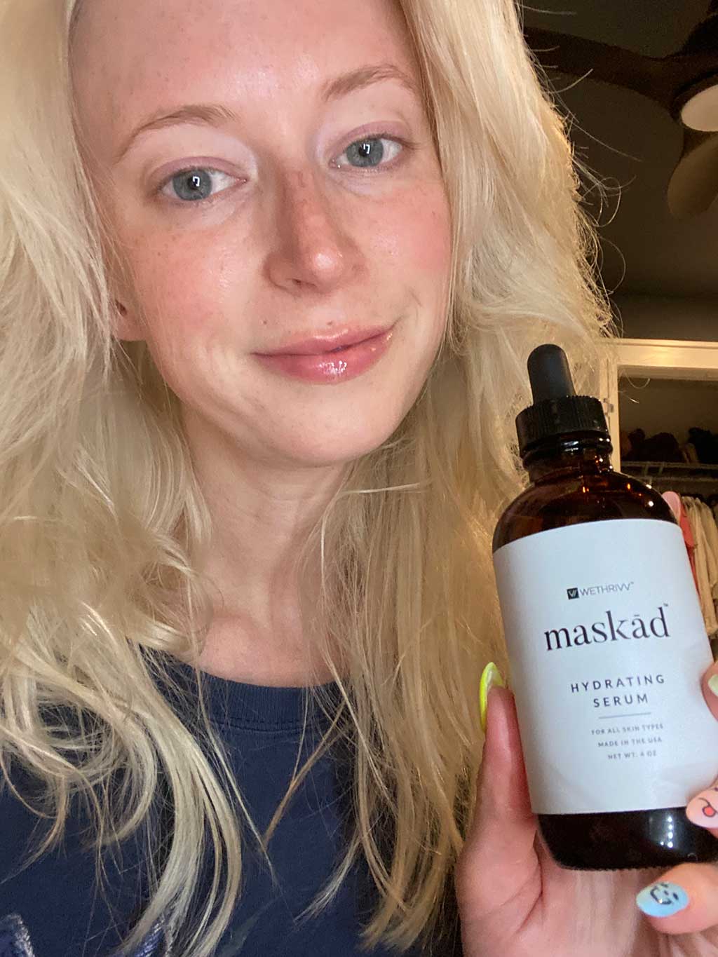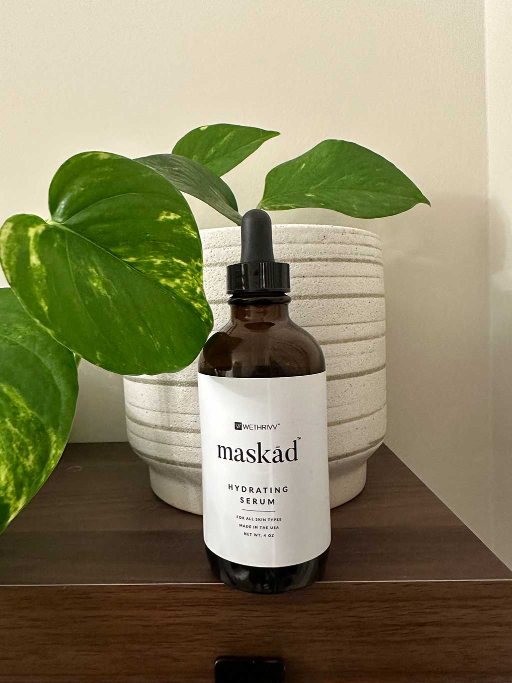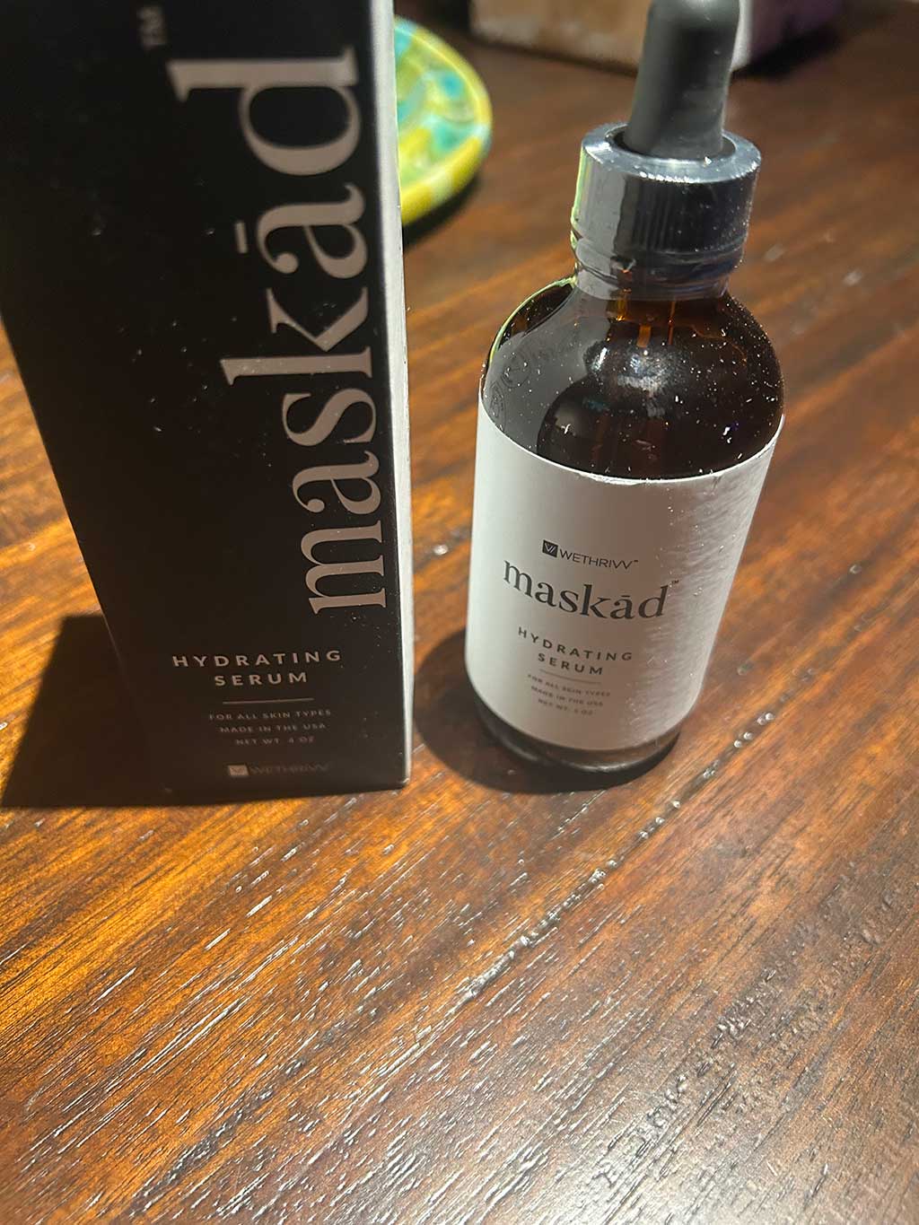Maskād Hydrating Serum is truly a wonderful addition to my routine.I am a licensed cosmetologist for over 25 years specializing in skin care. I often use actives such as retin-A, vitamin C, and AHA & BHA’s. This hydrating serum is wonderful for on top of those actives because it provides hydration from the hyaluronic acid. When you use actives such as Retin-A, it can be very irritating and cause a lot of dryness and flaking. The serum actually calms the skin and helps to hydrate flaky areas. You will notice a difference in the smoothness of your skin immediately, and it becomes wonderfully plump. I use the Retin-A at night, so I apply the serum on top of it at night as well but you certainly can use this in the daytime on top of your vitamin C. What’s also nice about this serum is that you could use it alone if you wanted and even oily skins could use this serum. It leaves no stickiness, tacky or greasy feeling so I can’t imagine who wouldn’t be able to use this awesome serum. For those who are clean conscious they will also love that it’s vegan and cruelty free as well as free from gluten, silicone, paraben and phthalates.
