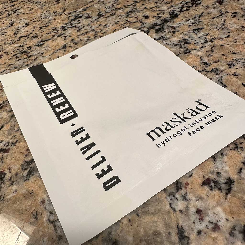 Comprised only of Highly Purified Water (HPW), the proprietary and patent pending Maskād® Deliver + Renew face mask is a “dry” hydrogel mask designed used to infuse topical serums into the skin.