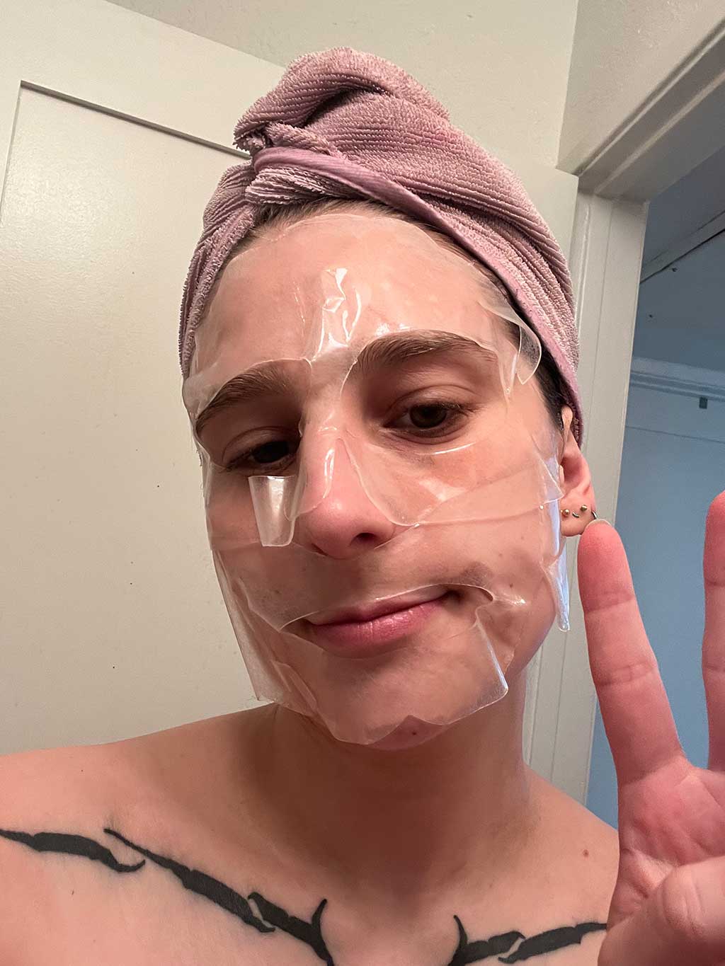 Hi Beautytappers! Sarah here: licensed cosmetologist, esthetician in training, skincare junkie, anti aging addict! I was so wowed by the education that Maskad and Thrivv provided for us beautytappers during our education class, and I really really wanted to love this Hydrogel Infusion Mask. Conceptually this mask is very cool, its intended to fit the face well and should be contoured to the face for maximum stick and product absorption. It is very cool that this is a “dry” mask. Because it’s made of hydrogel material, the mask is quite fragile, so I found it difficult to peel back both of the plastic layers that sandwich the actual mask without damaging and ripping it. It was difficult for me to contour the mask well to my face, which is a typical issue I encounter with sheet masks because I have a bigger nose. The mask is very sticky and does stay on as promised, but I think it’s too sticky on the outside and accidentally sticks to itself. I would definitely prefer that this mask be made of a washable multi use material, since its purpose is to drive a separate product into the skin. I think there are some kinks that need to be worked out when it comes to the packaging of this mask, and I would definitely be interested in trying it again. I wanted to love it, but it’s not my favorite of Maskad’s offerings unfortunately.