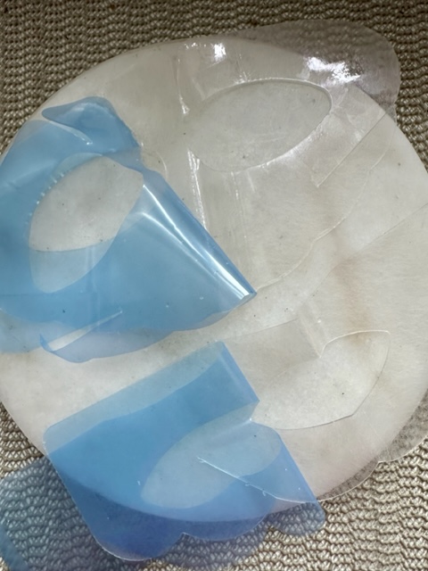 4. After 5 minutes, remove blue liners on both pieces and relax!