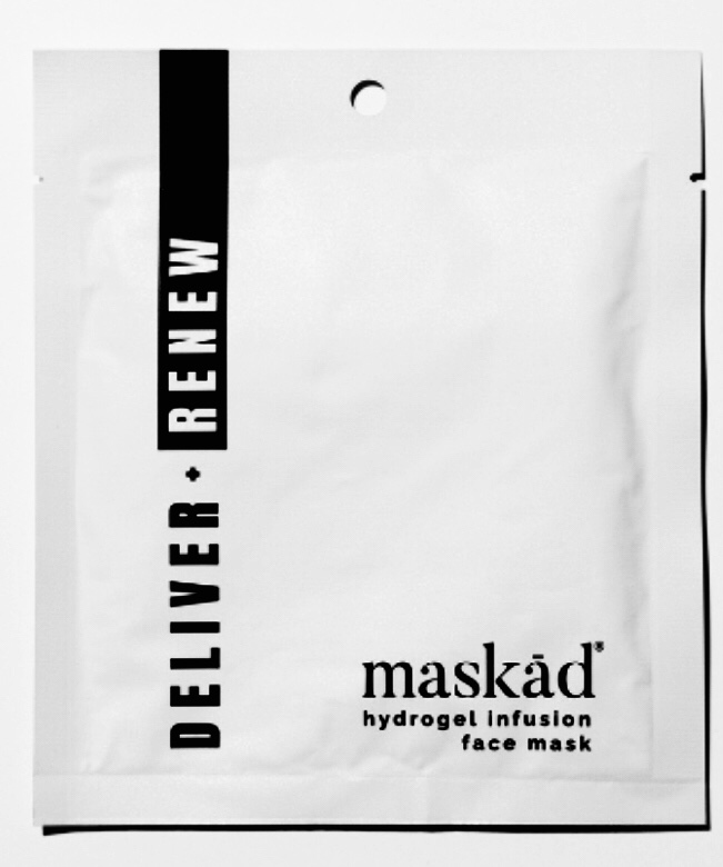 Comprised only of Highly Purified Water (HPW), the proprietary and patent pending Maskād® Deliver + Renew face mask is a “dry” hydrogel mask designed used to infuse topical serums into the skin.