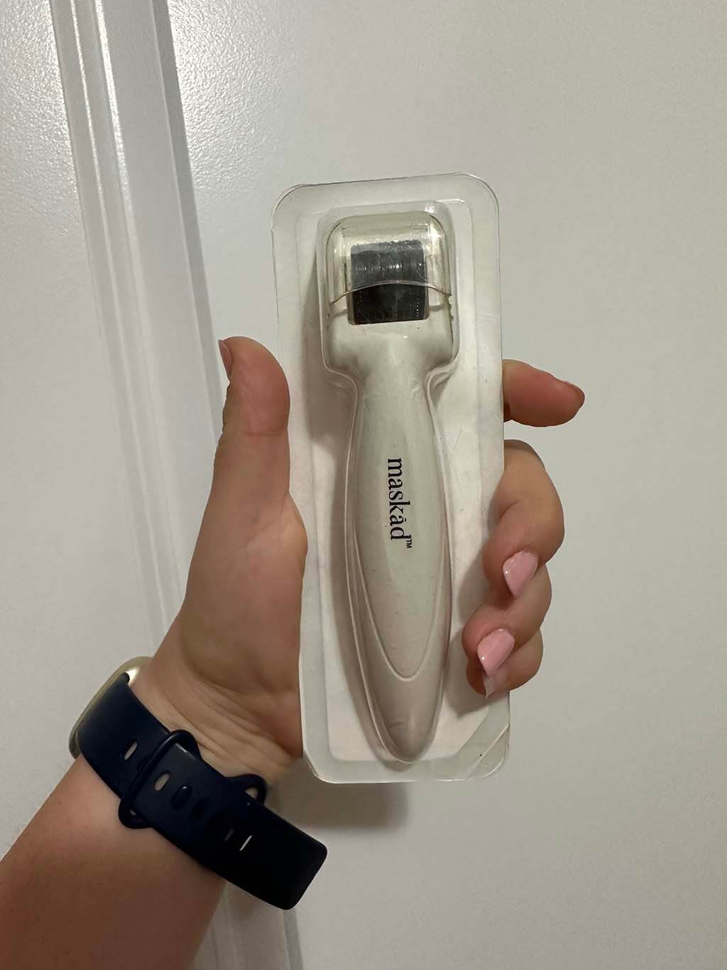 The Maskad Dermaroller is an affordable at-home micro-needling treatment. I can admit I have not experienced derma roller micro-needling despite working in the beauty industry for 4 years!! This being my first experience, I can say it was an easy at-home treatment. I can say I was a little unsure about it due to the ability of my skin to scar easily. After using it for the first time my skin looked a little more brighter in tone and smooth. I can’t tell you that I saw a dramatic difference due to my not wanting to overdo it. I intended to do it once a week and forgot all about it. I only used it twice. The tool is easy to sanitize, you can let it sit in boiled water. I can add that my serums seemed to absorb better into my skin. I can’t say I would recommend it to too many individuals who only have experienced this as an at-home treatment and not from a licensed esthetician. I would use this as a touch-up after seeing one or researching and watching videos before use. My skin is sensitive but not as sensitive as others. I would encourage people with sensitive skin to get this treatment from a professional and communicate their skin concerns and what skin type they have. That being said I can’t say how often I would continue to use it.